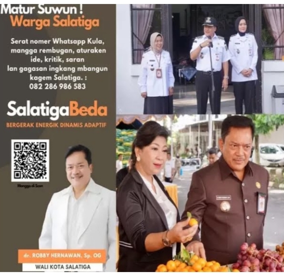 INTERESTNEWS, – SALATIGA – HEI! Warga Salatiga. Goodnews! Bagi warga Salatiga dapat menyampaikan aspirasi ke Wali Kota Salatiga dr Robby Hernawan SpOG dengan memanfaatkan Aplikasi WA Salatiga Beda dan barcode.