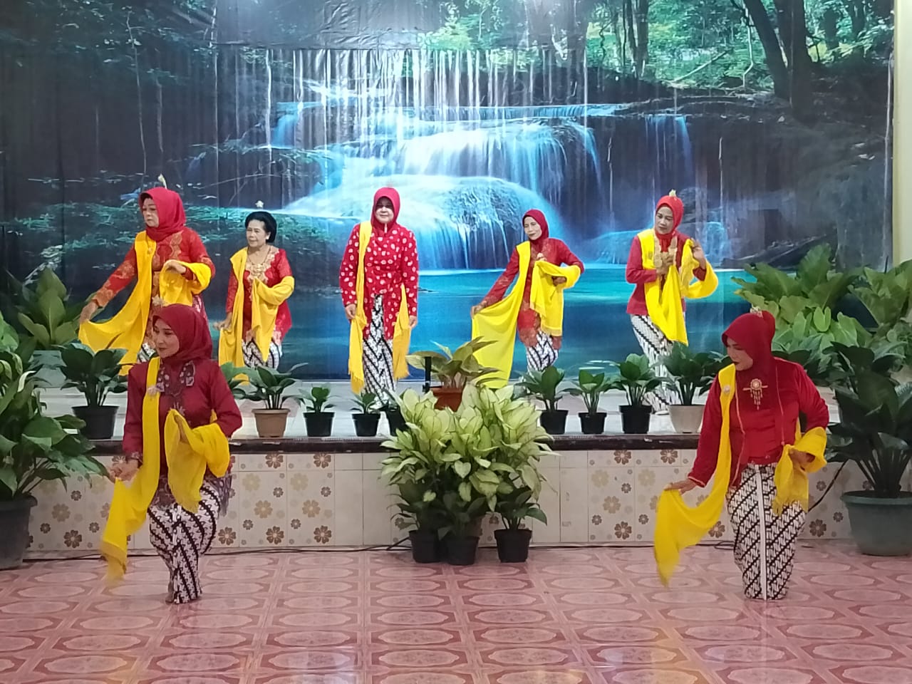 Penampilan tari gambyong yang sangat indah menambah kemeriahan di puncak HUT PWRI yang di lanjutkan seni ketoprak climen yang di peragakan oleh ibu ibu anggota PWRI Klaten selatan. (Sino)