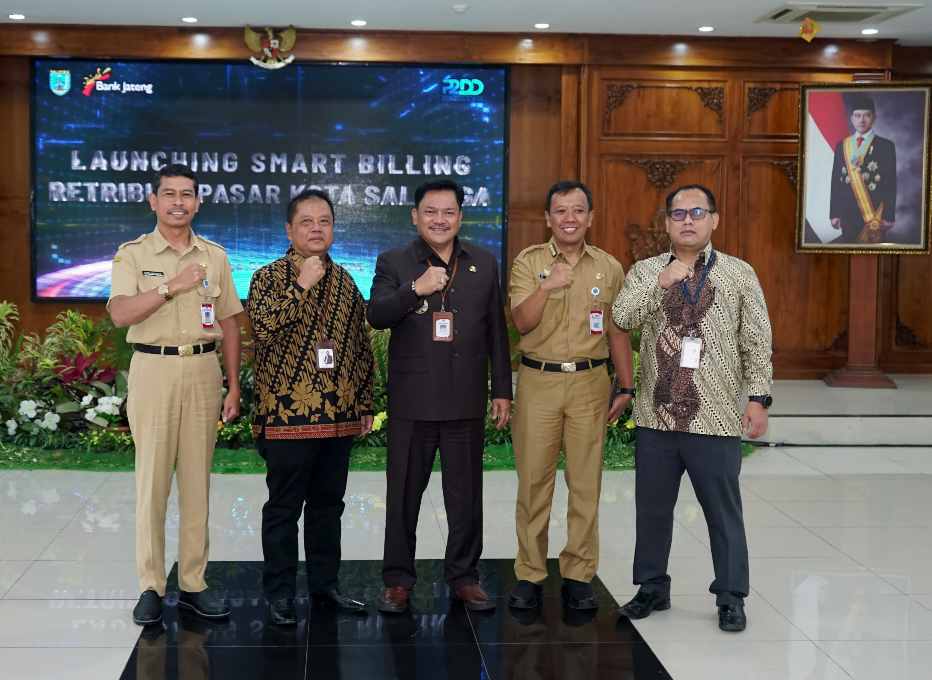 INTERESTNEWS, – SALATIGA – Wali Kota Salatiga, dr. Robby Hernawan, Sp.OG., bersama Plt. Kepala Dinas Perdagangan Kota Salatiga, Agung Pitoyo, AP, M.H. dan Kepala Divisi Bisnis Kelembagaan dan Komersial Bank Jateng, Imam Hanafi, melaunching Program Bayar Pas (Bayar Retribusi Pasar Berbasis QRIS).
